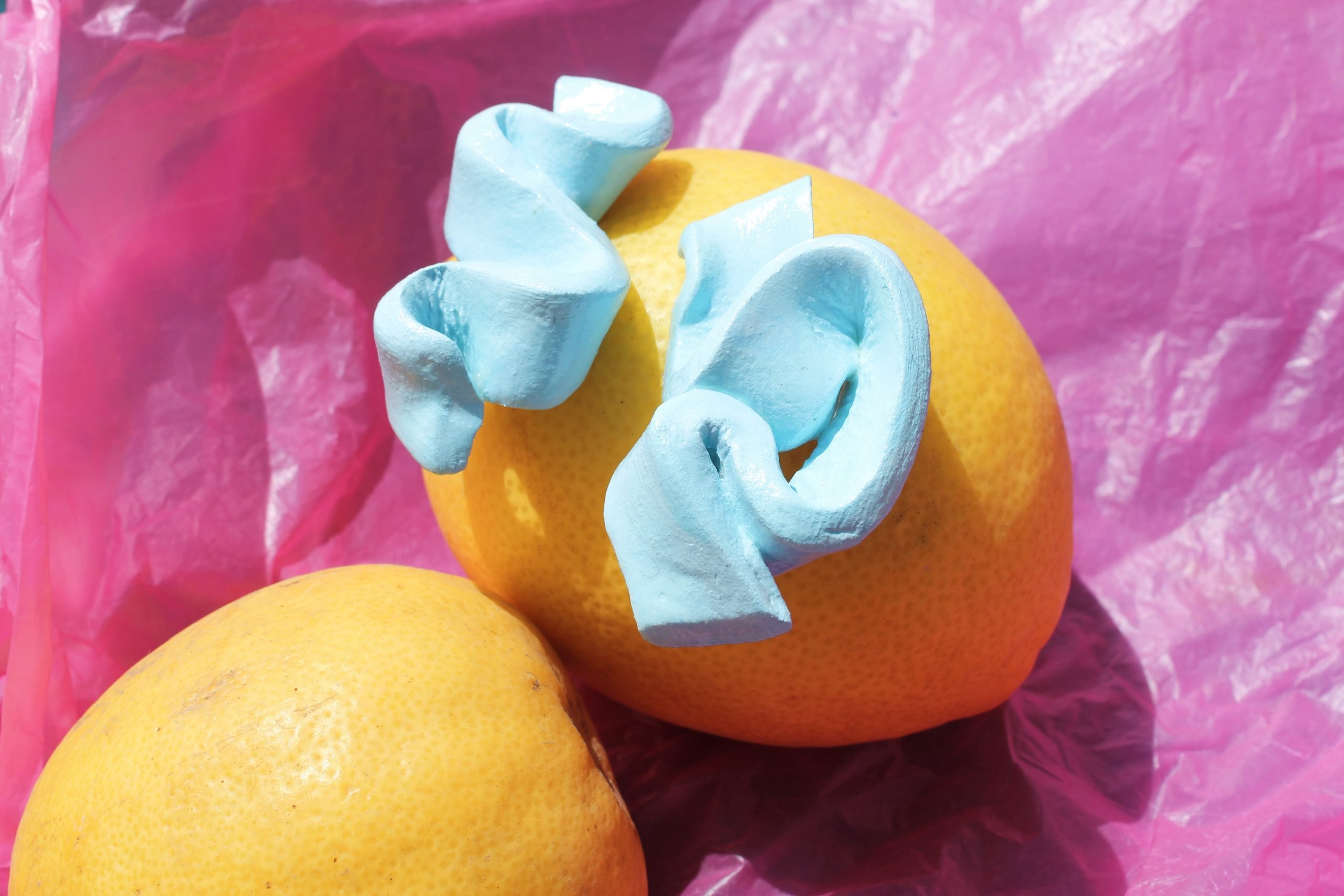It is made with modelling clay. Painted with water-based acrylic ink and 4 layers of varnishes for extra protection.